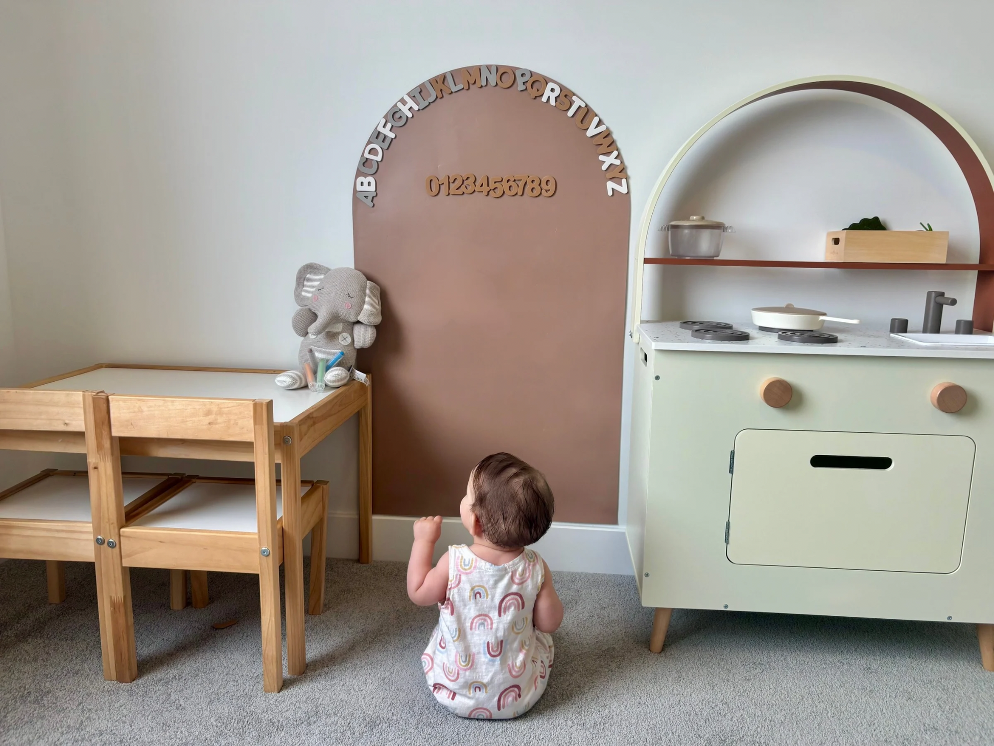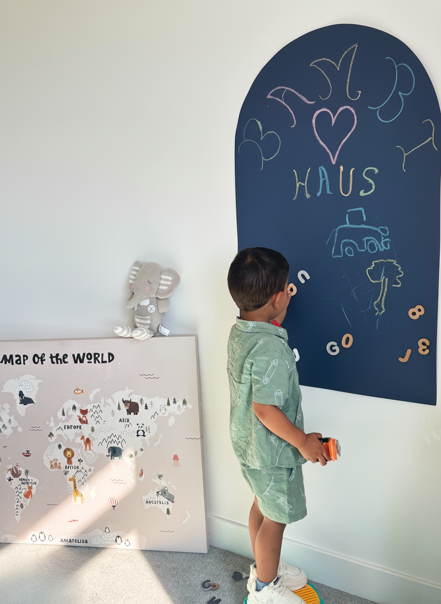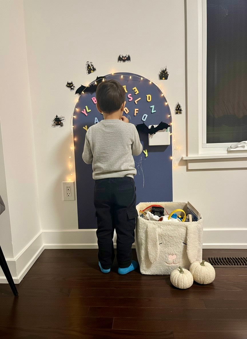 The Wonder Wall is made for creativity — use magnetic letters, shapes, numbers, chalk markers, and other lightweight sensory accessories. It’s a space where learning and play come to life.