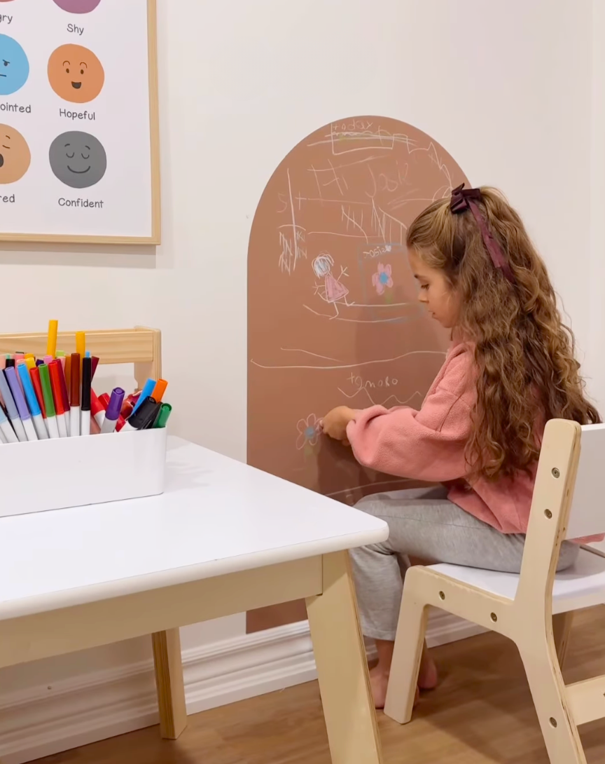 Move play up onto the wall so crayons, blocks, and art live in one calming zone — not all over your floors.